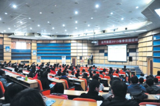 3月18日下午,北汽集團2013 春季校園招聘首場宣講會在北京理工大學(xué)舉行,拉開了北汽集團2013春季校園招聘序幕。首場宣講會現(xiàn)場火爆,原本能夠容納500人的招聘會現(xiàn)場,擠進了600多名應(yīng)屆畢業(yè)生。隨后,陸續(xù)在上海交通大學(xué)、北京工業(yè)大學(xué)等高校開展的校園招聘依然是場場爆滿。